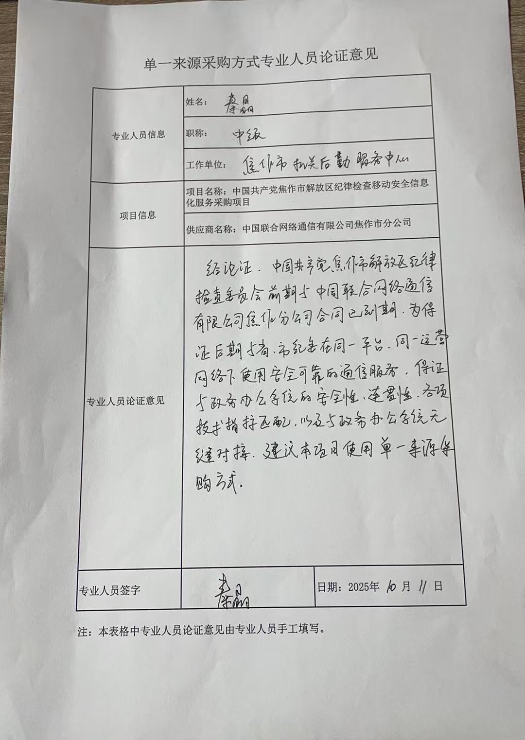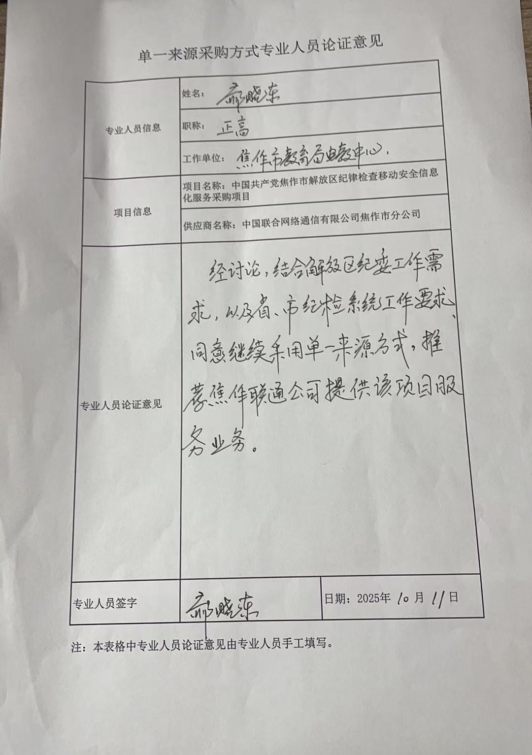 秦晶 | ******服务中心 | 中级 | 见专家论证意见附件 |